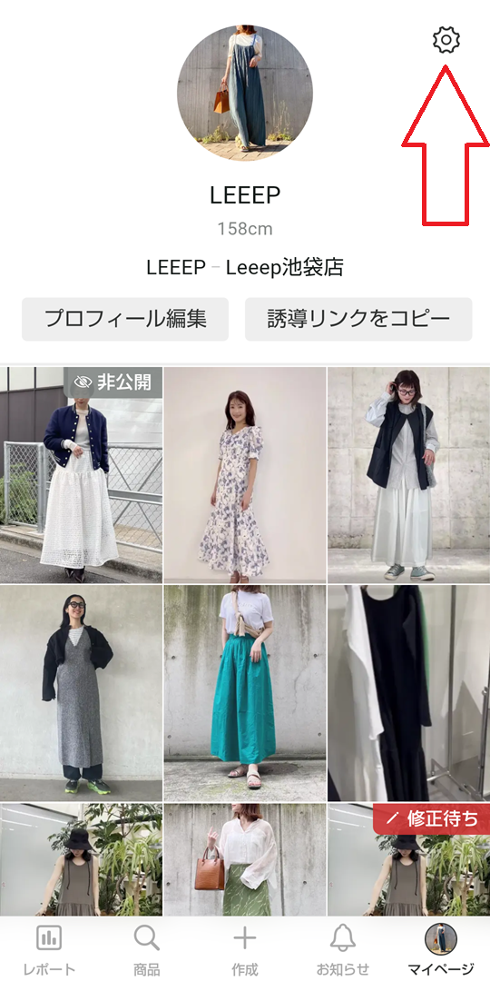 1.メニューバーの「マイページ」の右上にある歯車マークをタップし、設定画面を開いてください。