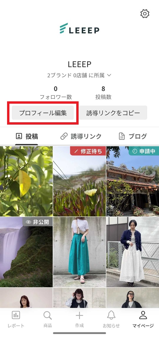 メニューバーの「マイページ」から、「プロフィール編集」をタップします。