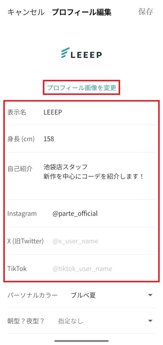 変更したい項目(画像・表示名・身長・自己紹介文など)を編集します。