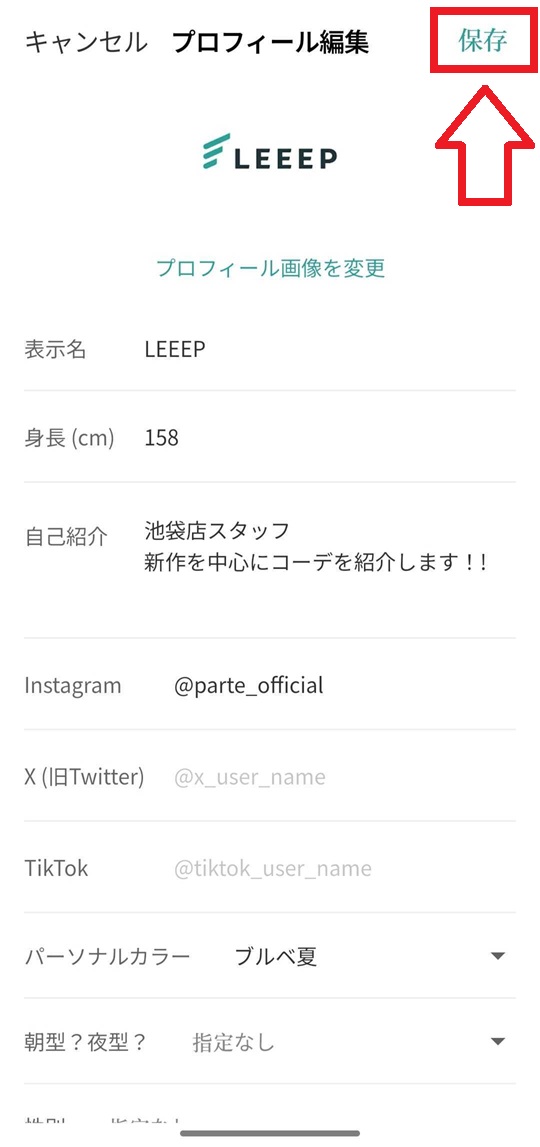 内容を確認し、画面右上の「保存」をタップすれば完了です。