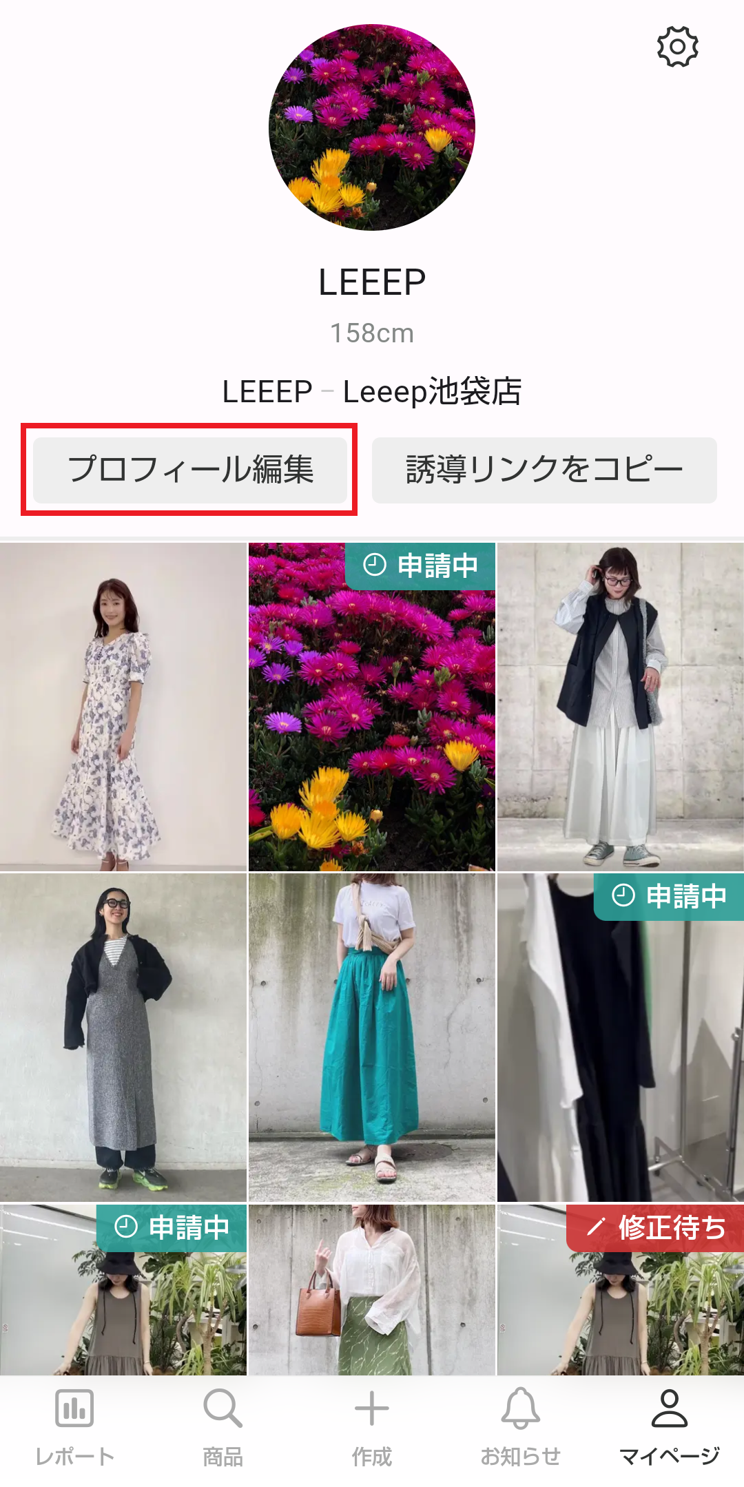 1.メニューバー「マイページ」の「プロフィール編集」をタップしてください。