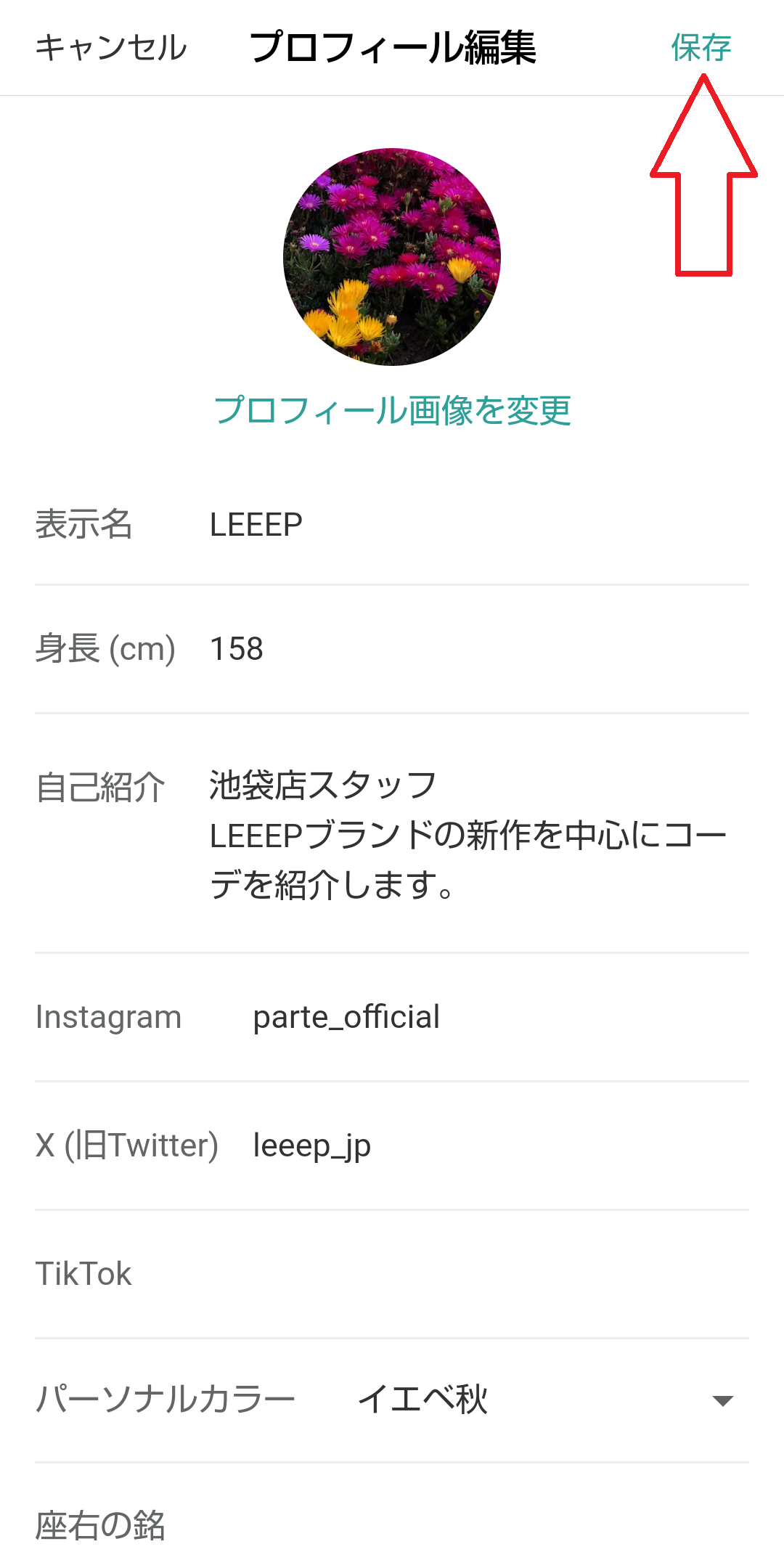 2.変更したい内容を記入し、「保存」をタップしてください。