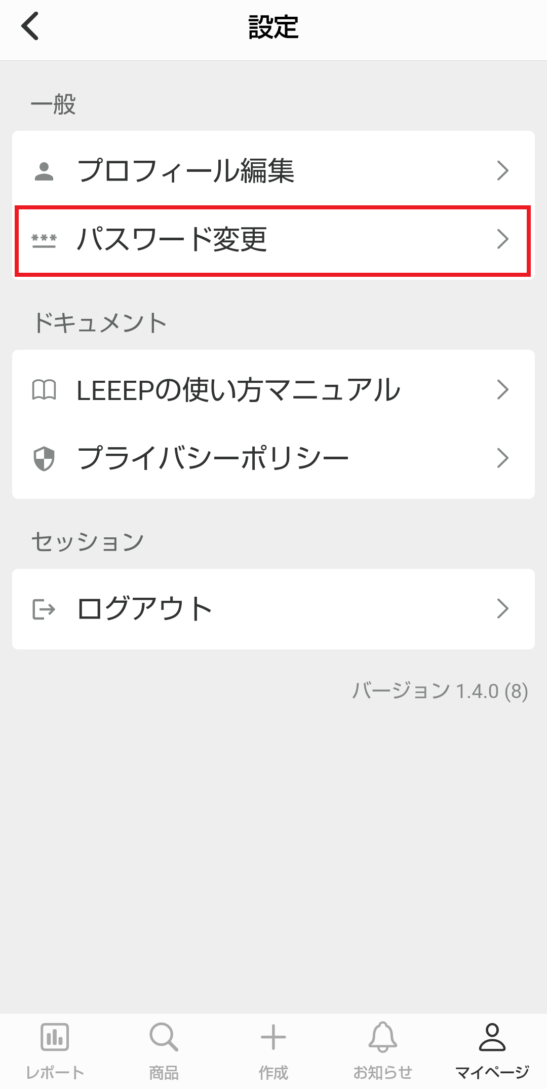 2.一般「パスワード変更」をタップ