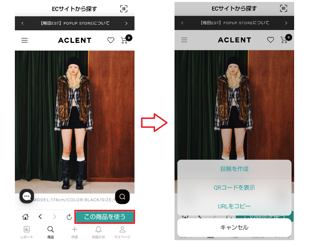 店頭でお客様にQRコードを見せたり、URLを送ることでお客様をECサイトに誘導していただけます。