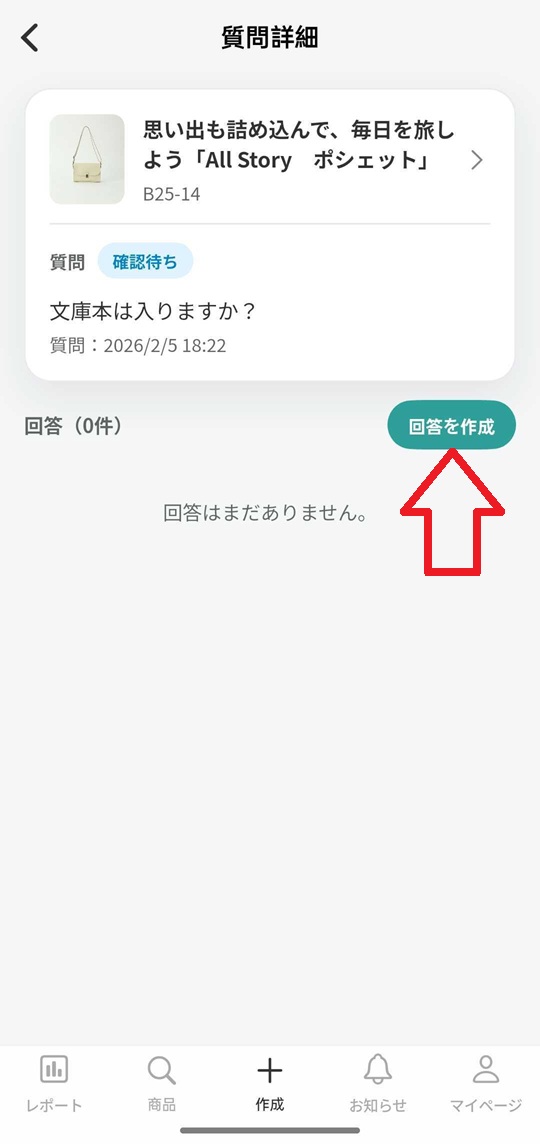 質問詳細画面の「回答を作成」ボタンをタップすると、回答作成画面が表示されます。
