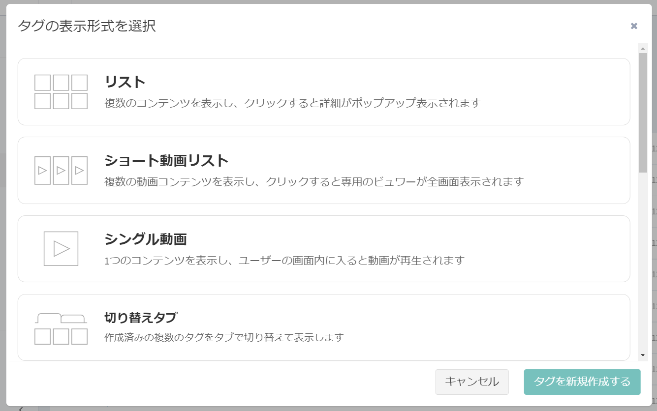[新規登録する] をクリックし、任意の表示形式を選択してタグを作成してください。