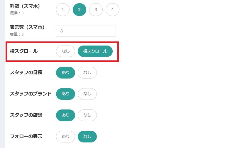「スタッフリスト」にて、横スクロール表示の設定が可能になりました!