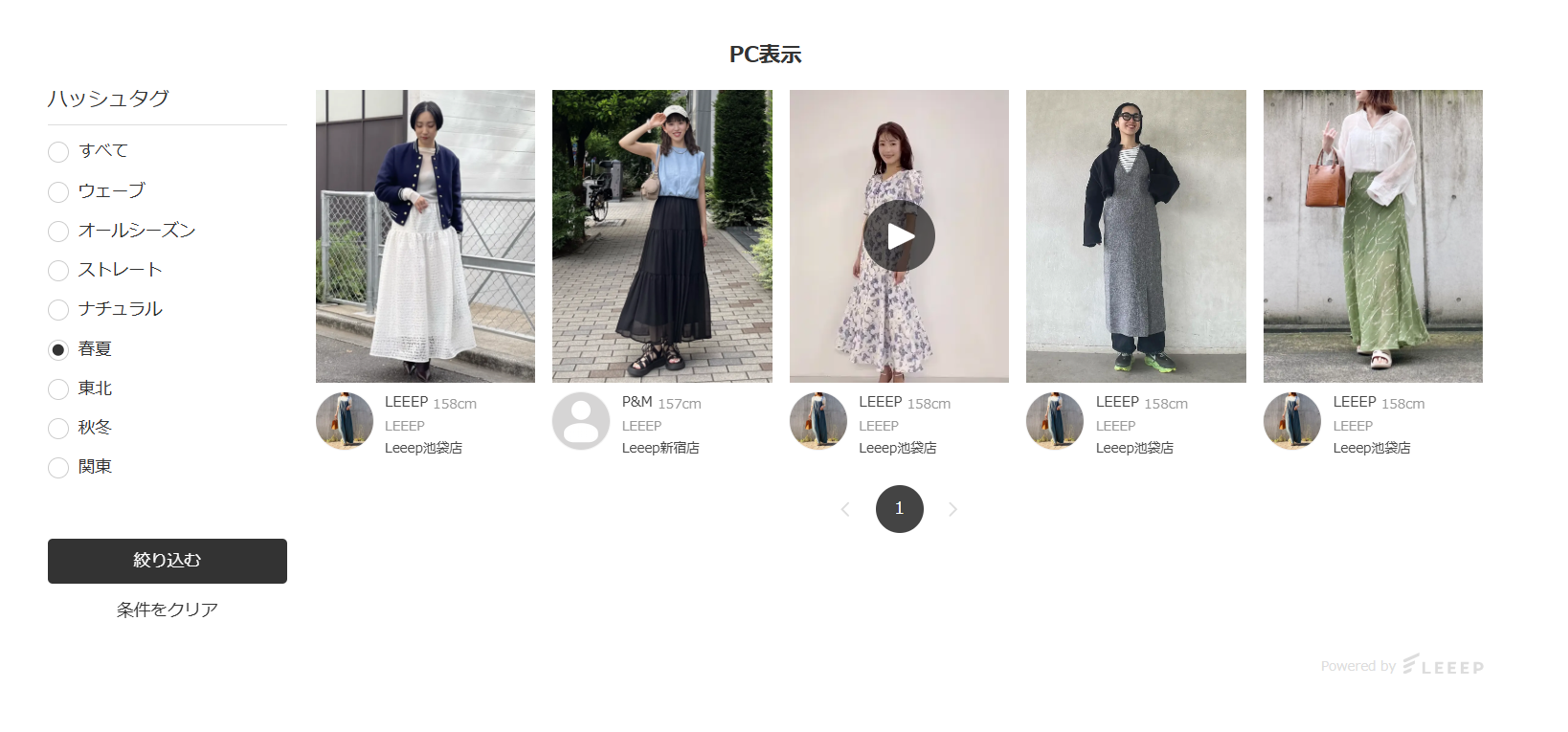 例:#骨格ストレートコーデ、#春夏コーデ などで関連投稿を表示したい場合。