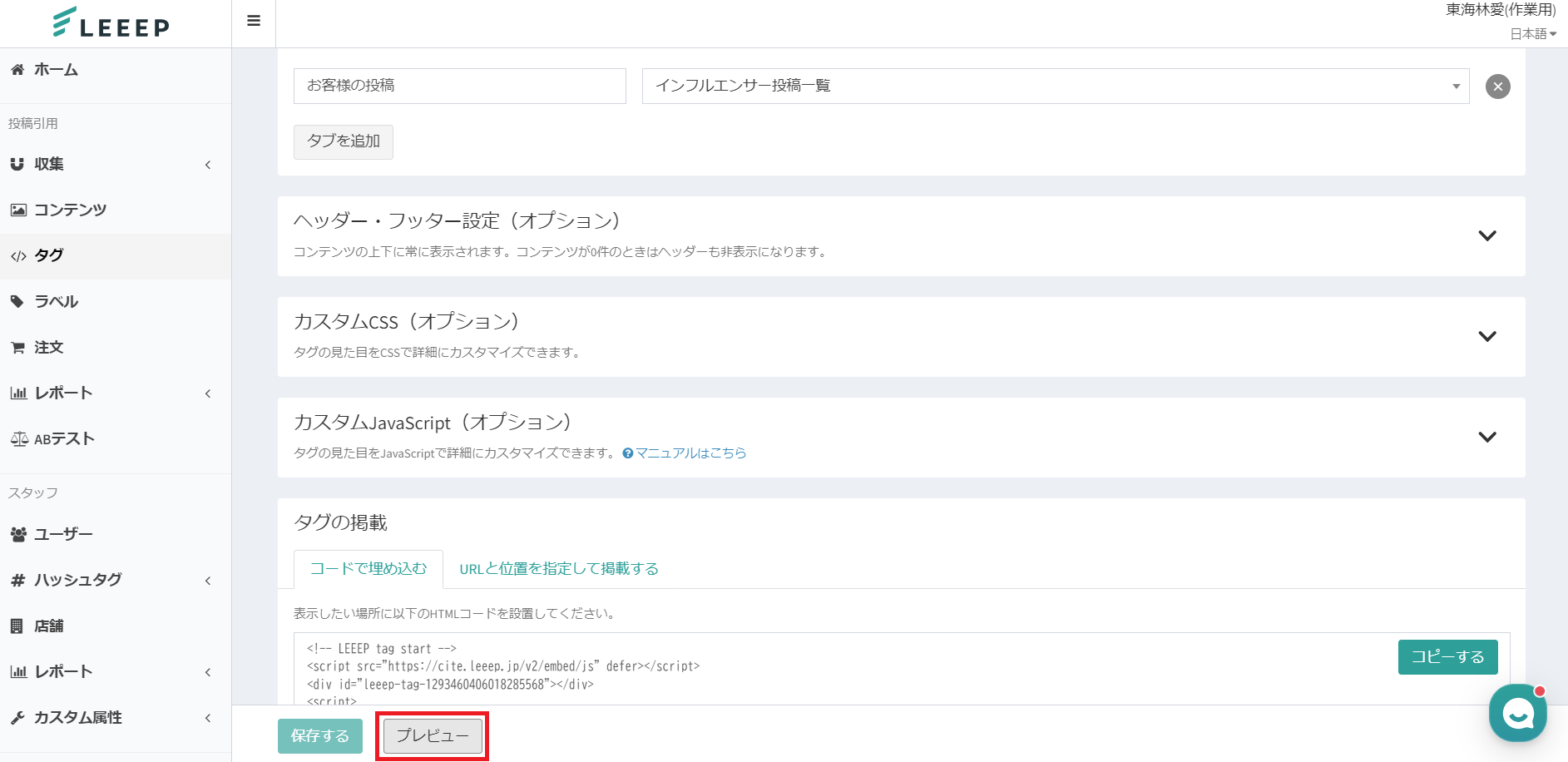 また、作成したタグをプレビュー機能で確認することも可能です。