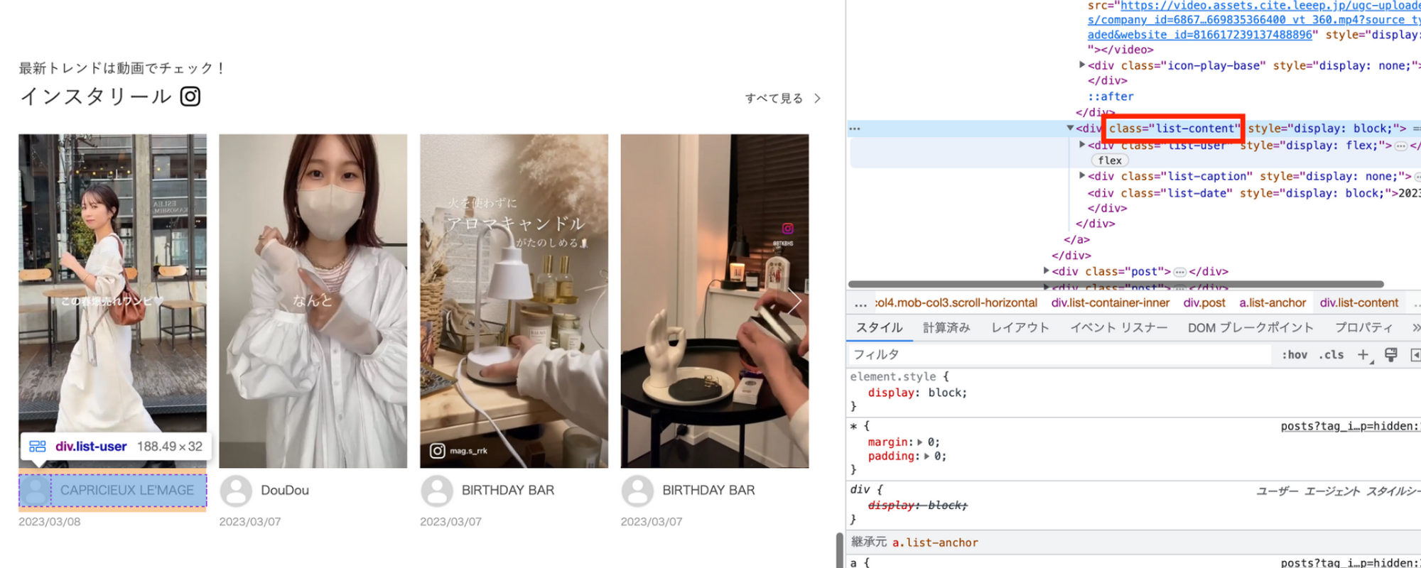 「スタッフ投稿リスト」のタグでスタッフの丸アイコンを非表示にする