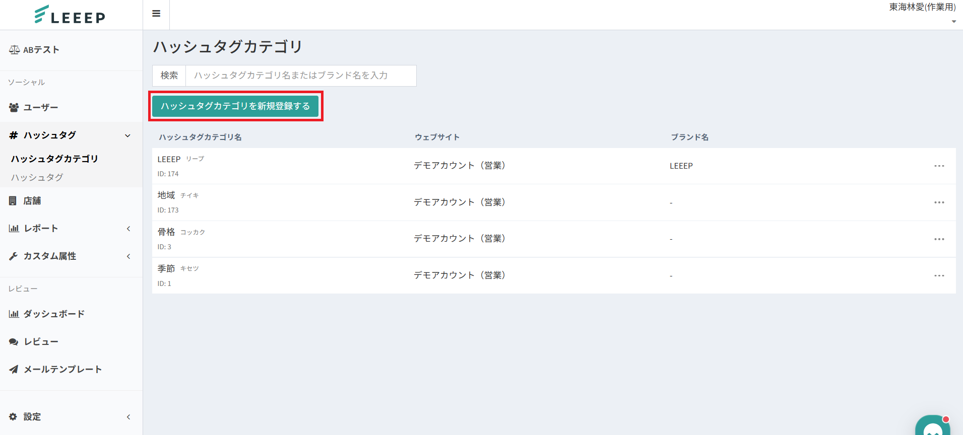 ハッシュタグは、タグカテゴリに紐づけて登録することが可能です。