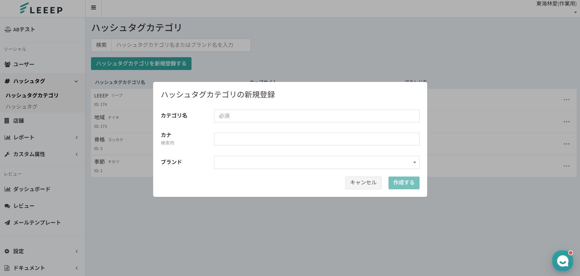 2.ハッシュタグカテゴリの新規登録画面から、カテゴリ名を入力してください。