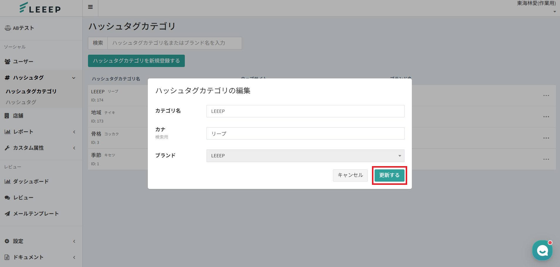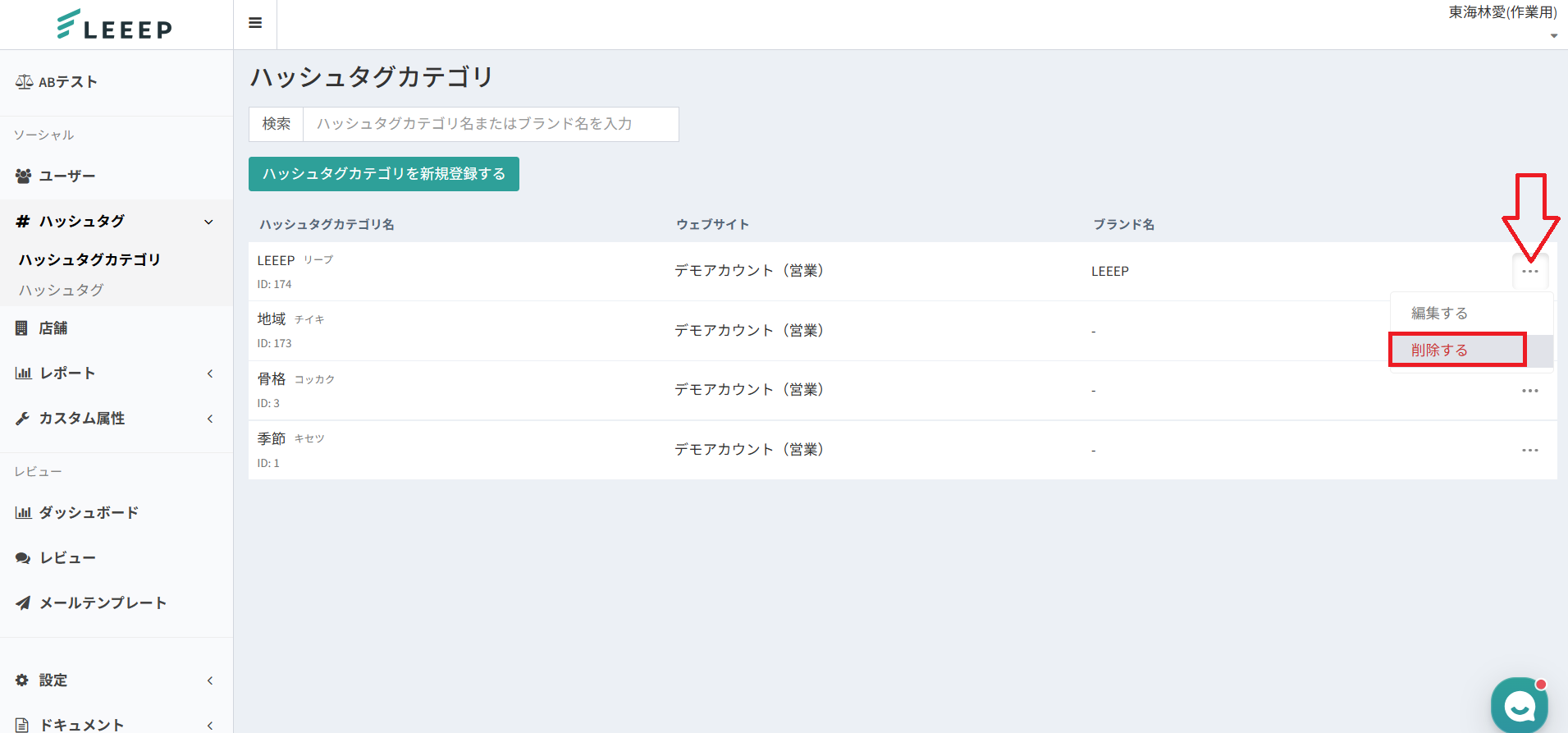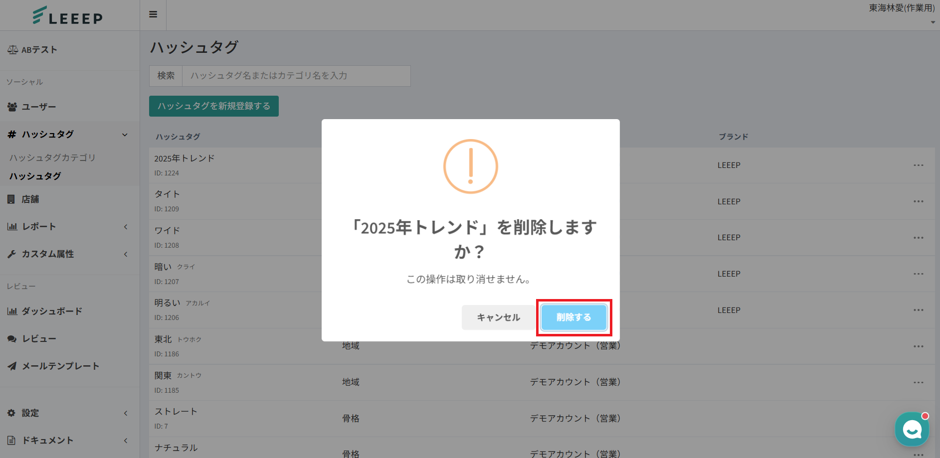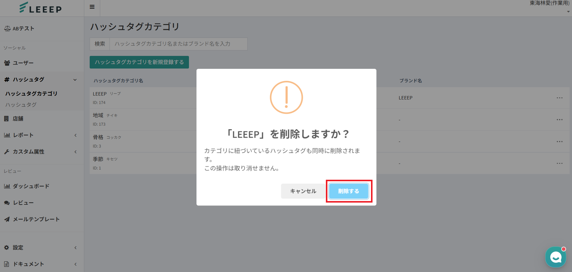 ※カテゴリに紐づいているハッシュタグも同時に削除されます。この操作は取り消せないため、十分注意してご利用ください。