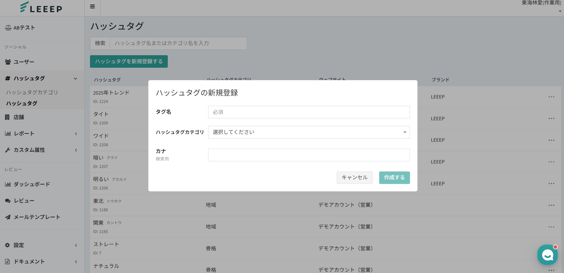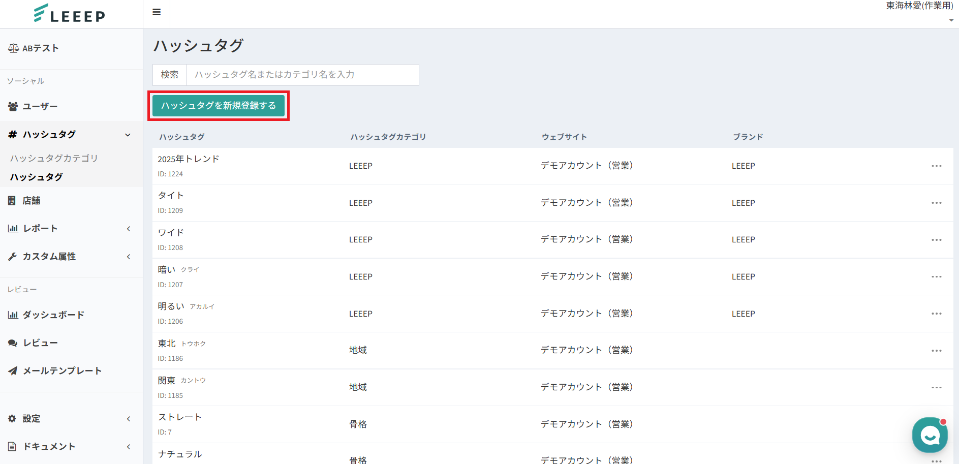 2.ハッシュタグの新規登録画面から、ハッシュタグを登録してください。