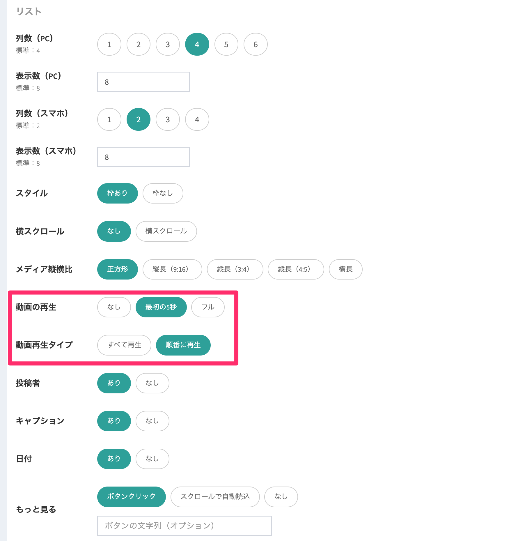 「動画の再生」を「最初の5秒」「フル」を選んでいる場合に「動画再生タイプ」は選択出来るようになります