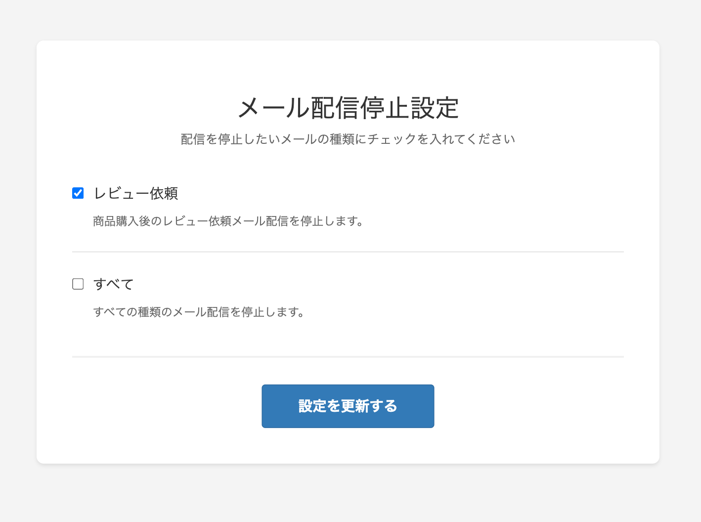 ※配信停止設定を行ったメール受信者は、自動的にレビュー依頼メールの送信対象から除外されます。