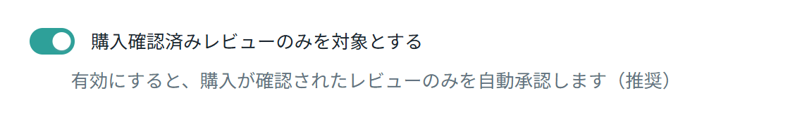 説明: 有効にすると、購入が確認されたレビューのみを自動承認します(推奨設定)