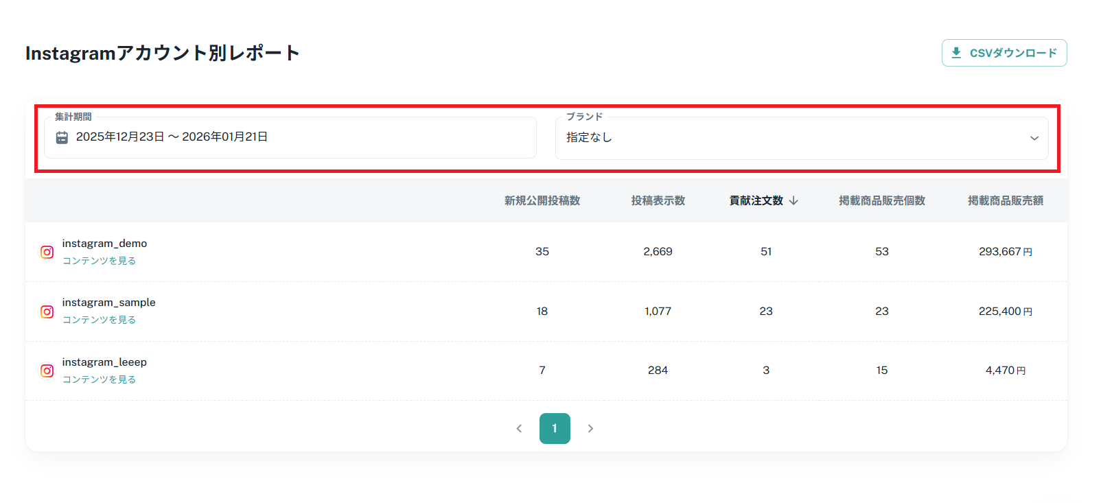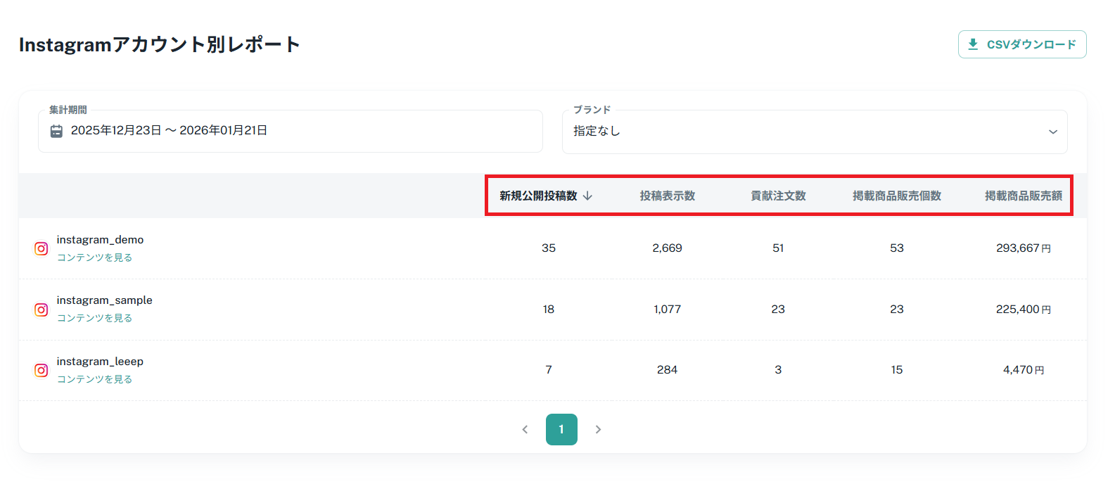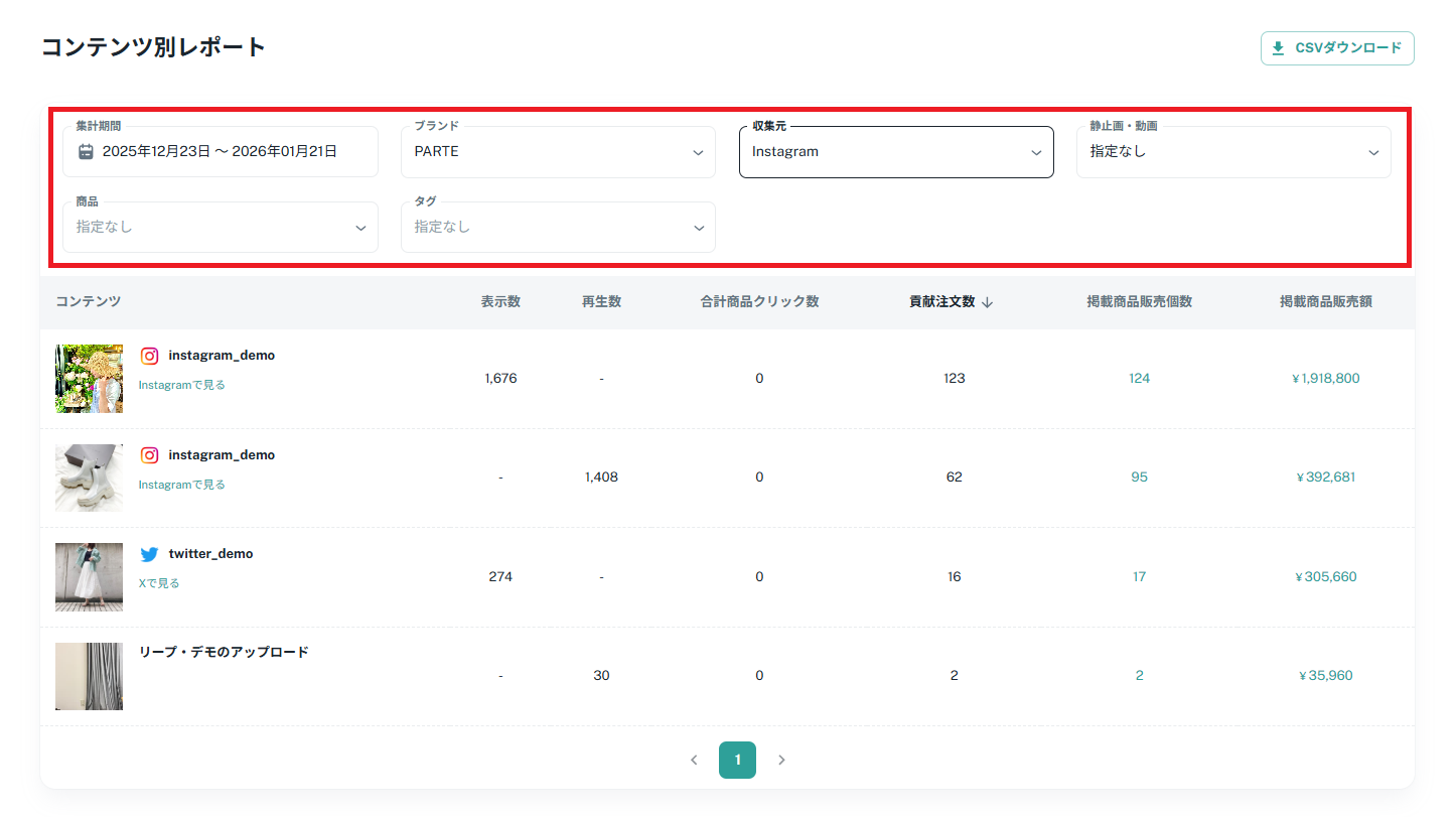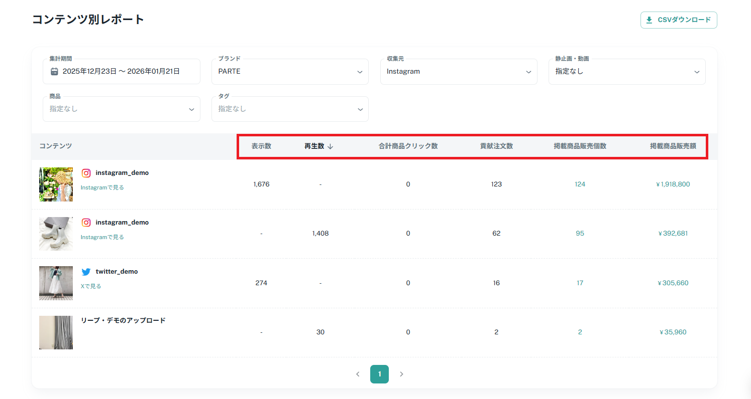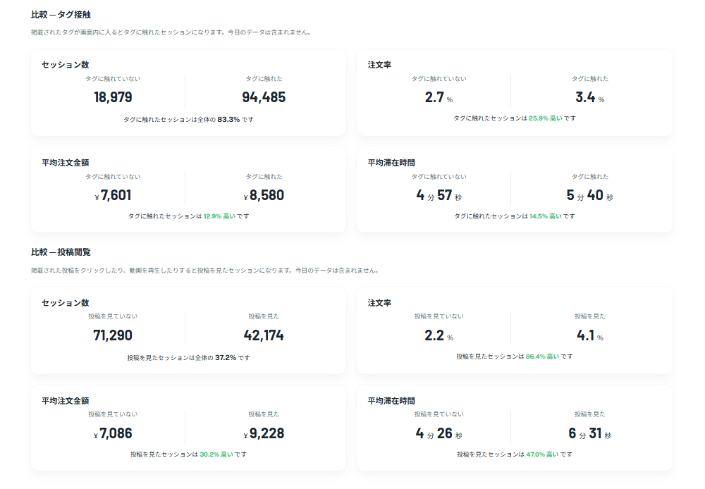 UGCコンテンツの貢献度や、自社スタッフの投稿がどれくらい売上に直結しているかを把握するのに役立ちます。