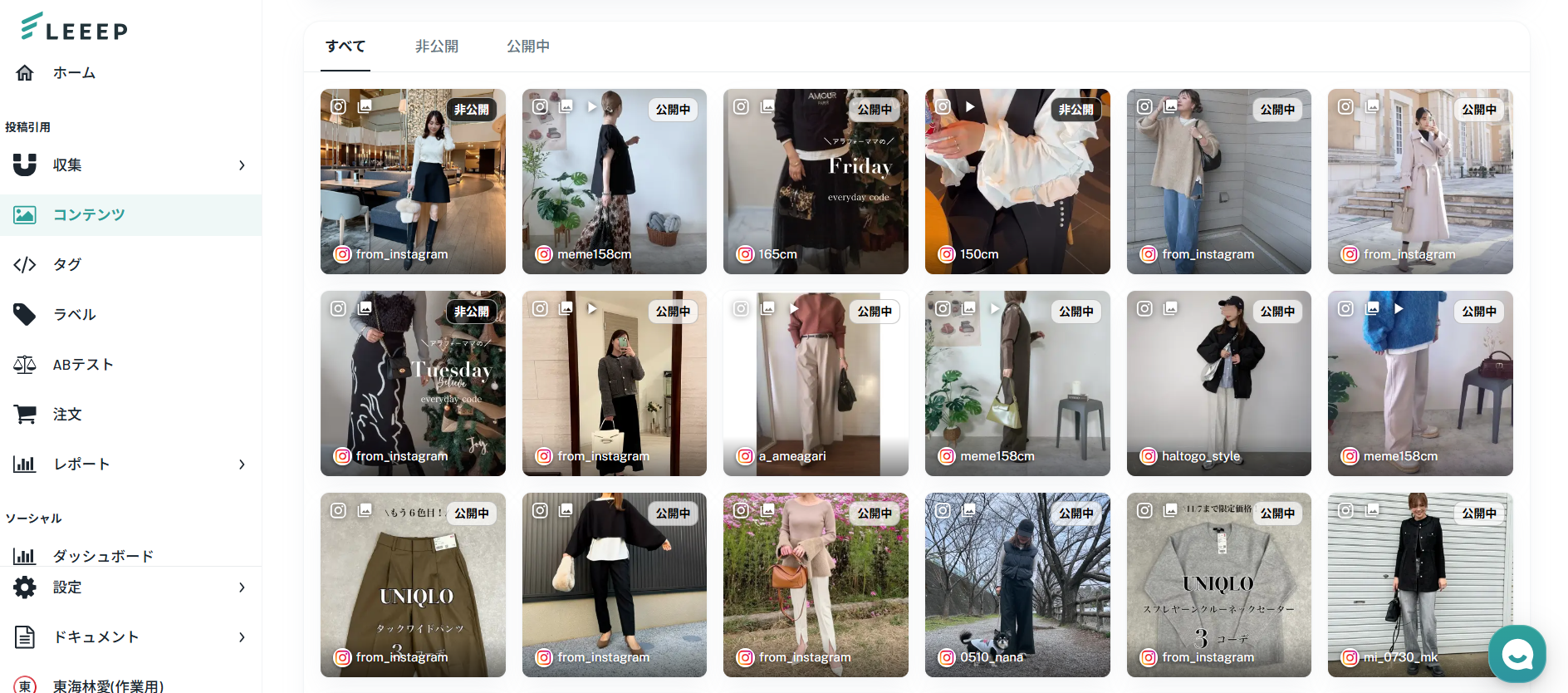 ※ステータスに応じて[公開中]または[非公開]タブに切り替えて確認することも可能です。