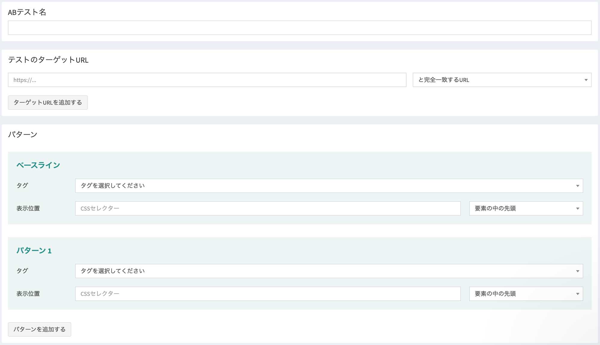 LEEEPでもABテストができるようになりました!ABテスト機能が利用できる契約プランは以下の通りです。<契約プラン>プレミアムプラン テスト対象のURLを指定し、パターンごとにタグと表示位置を変えて効果を検証できます。