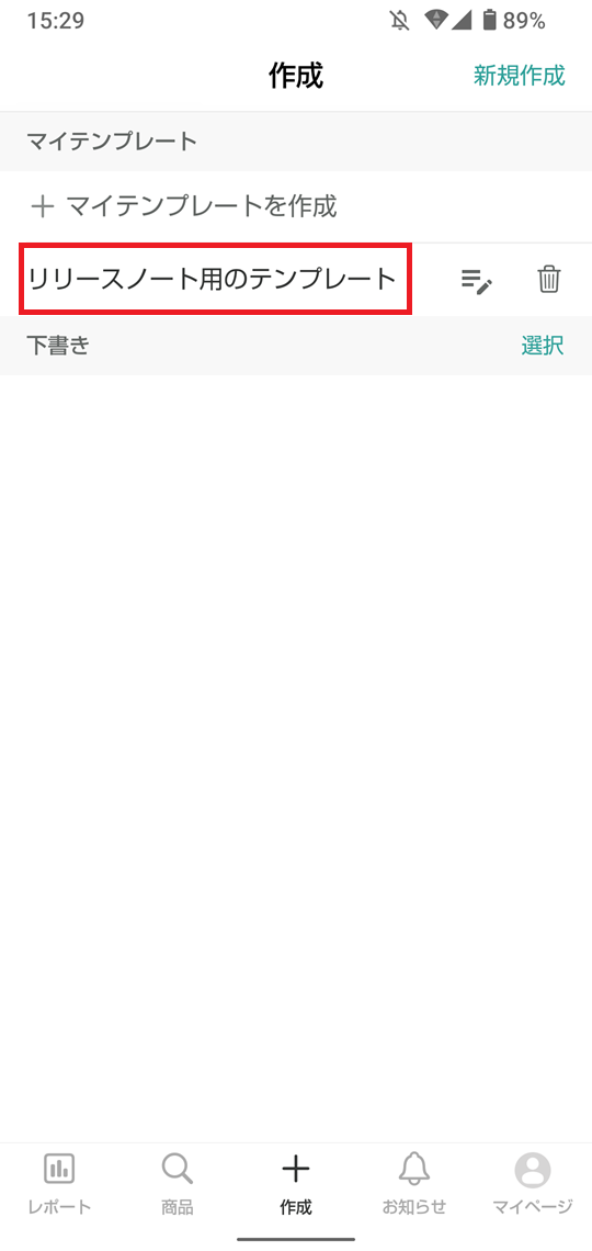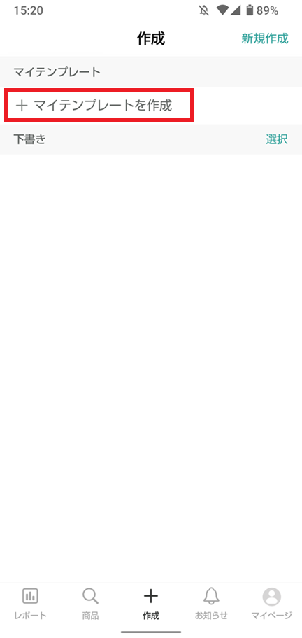 ②「+マイテンプレートを作成」をタップします。
