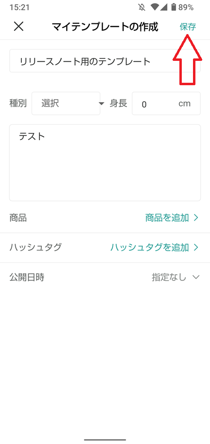 ③各フォームに情報を入力し、右上の「保存」をタップして完了です。