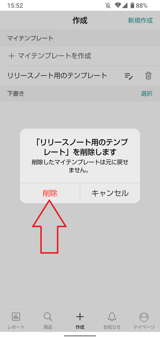※一度削除したマイテンプレートは元に戻せませんのでご注意ください。