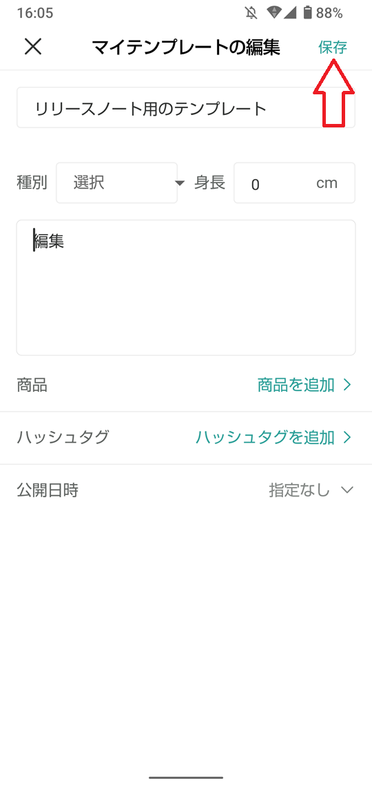 ②各フォームの情報を編集し、右上の「保存」をタップすれば完了です。