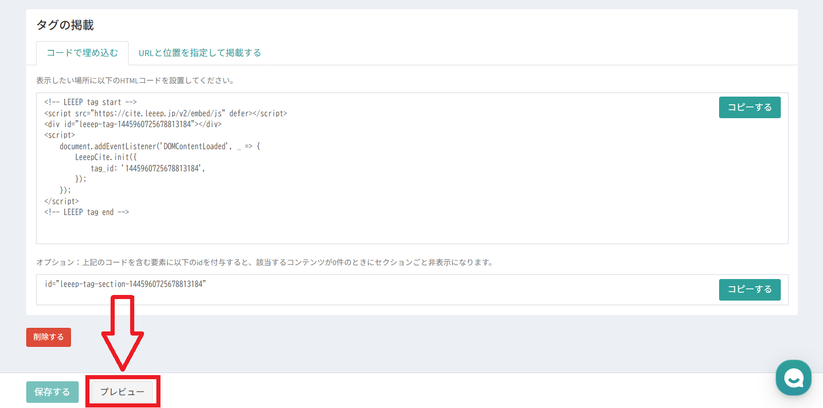 作成したタグをプレビューで確認することができます。