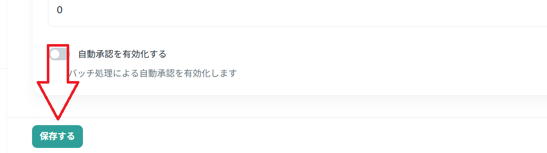 自動承認を有効化する | このスイッチをONにすることで、自動承認(バッチ処理)が実行されます。 |