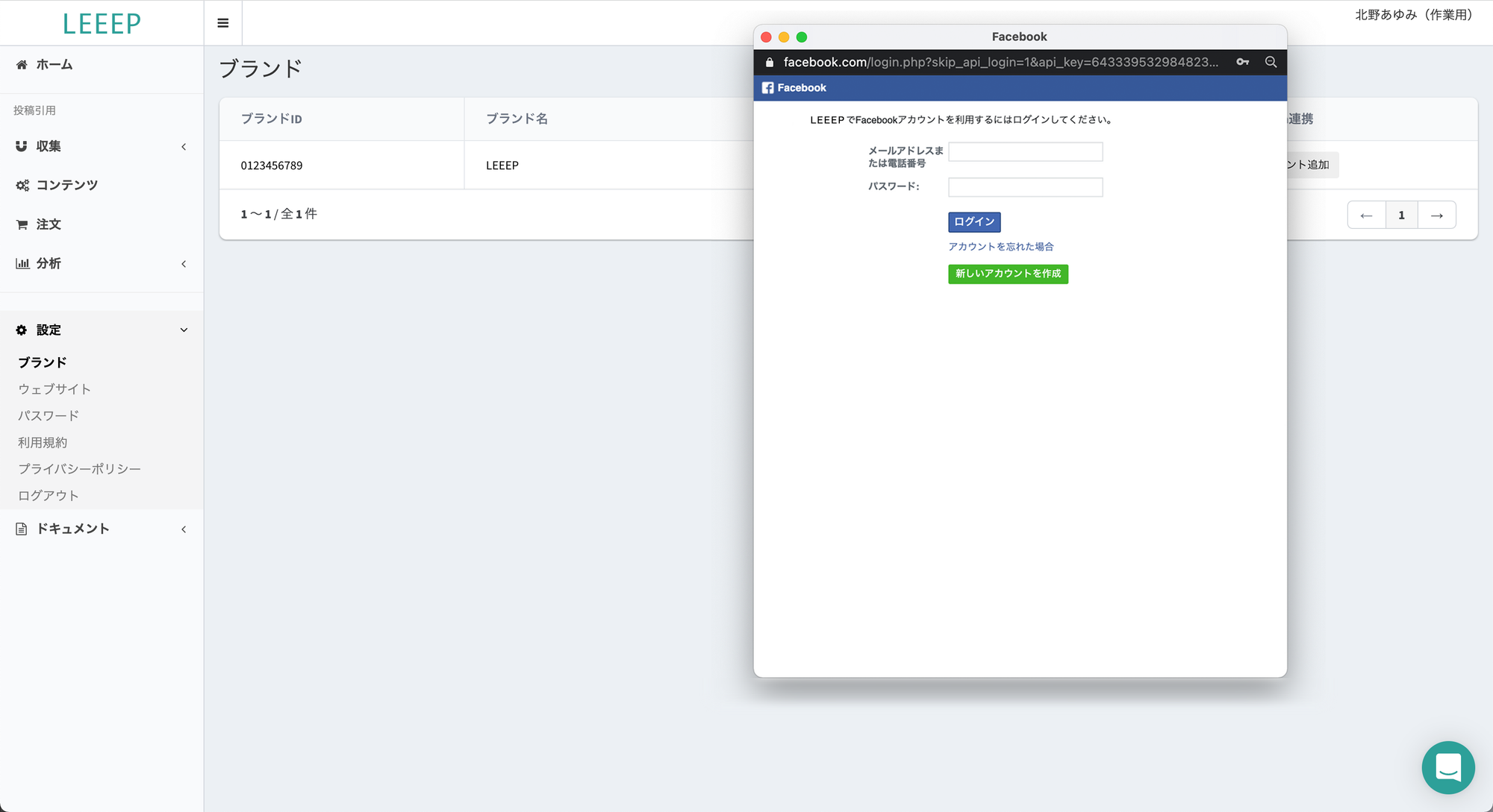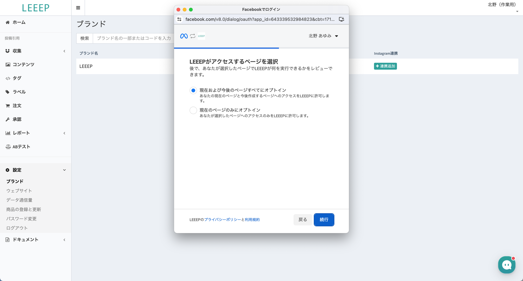 リンクされたことを確認した後、あらためてLEEEPで連携したいFacebookページを選択して、連携を完了してください。