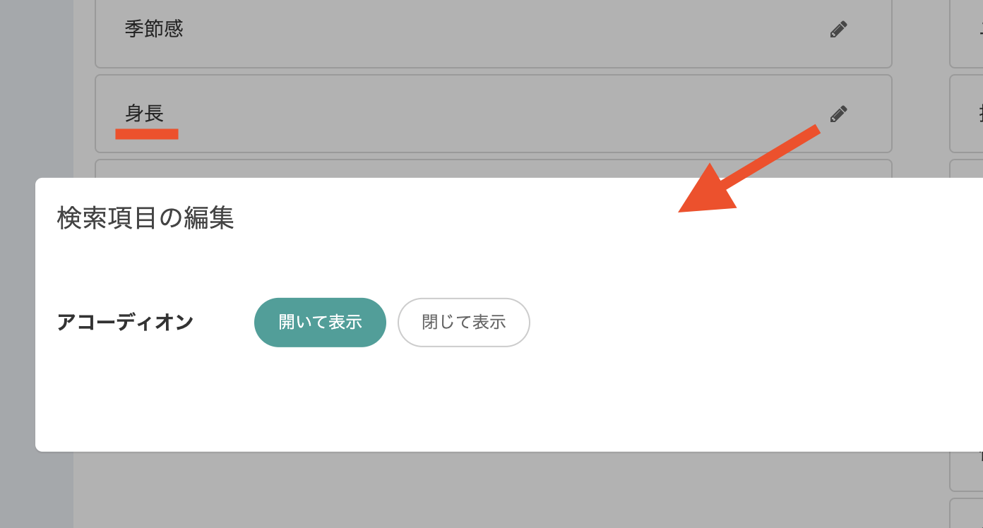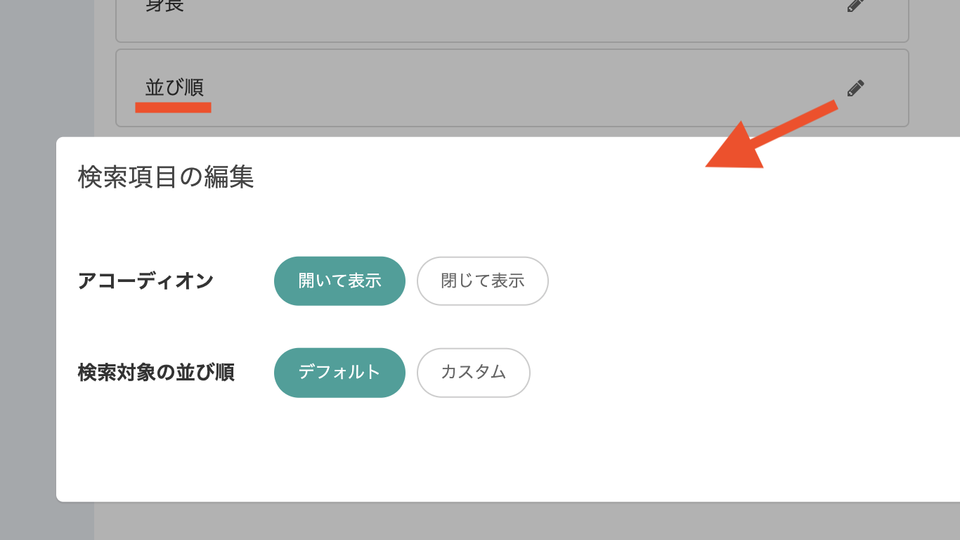 「ソーシャル投稿検索」と「投稿者検索」のタグでは、身長や店舗の検索項目について、並び順を好きなように変更したり、不要な項目を非表示にしたりできます。