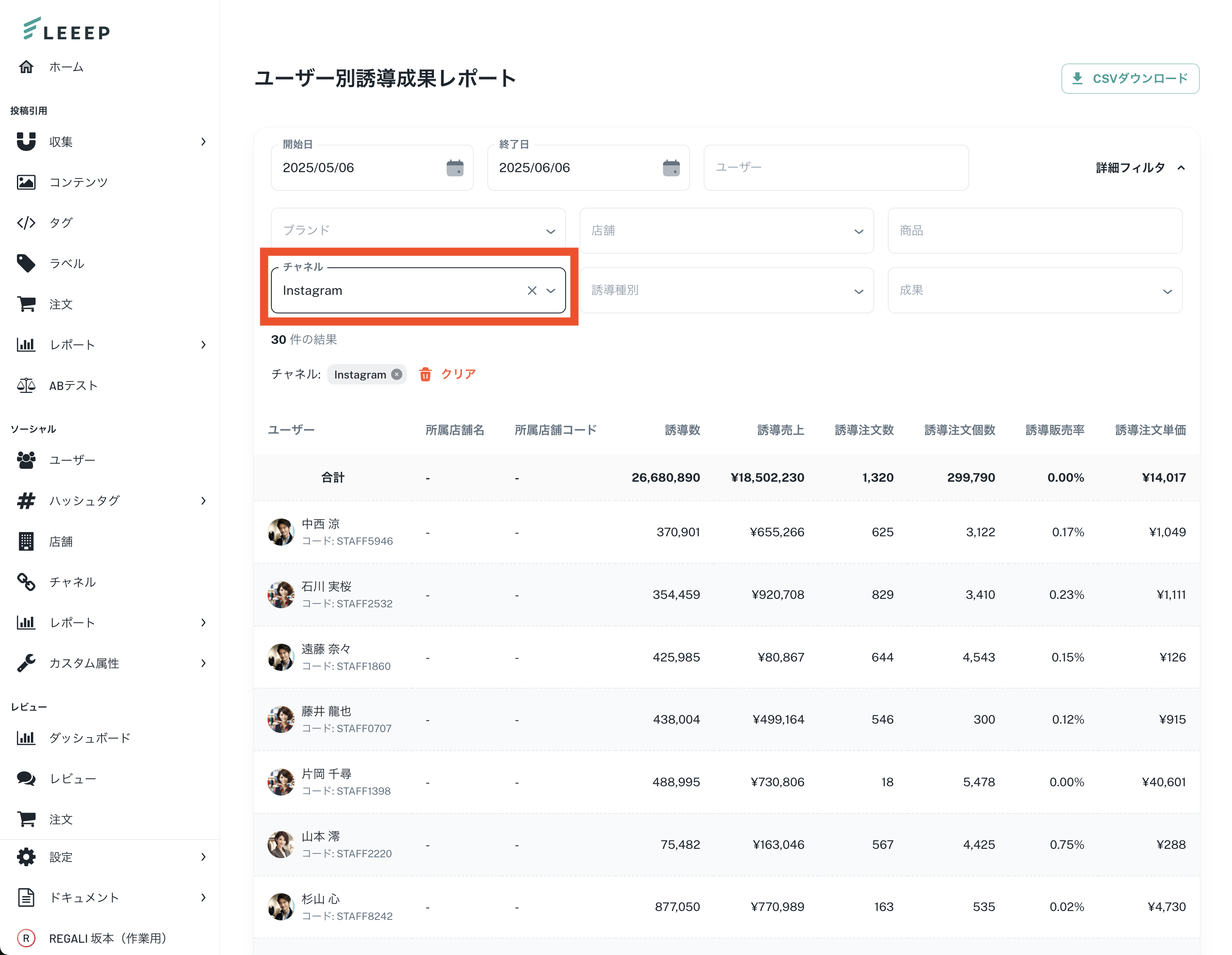 この度、LEEEPのソーシャル機能において、誘導リンク成果レポートの機能のアップデートを行いましたのでお知らせいたします。