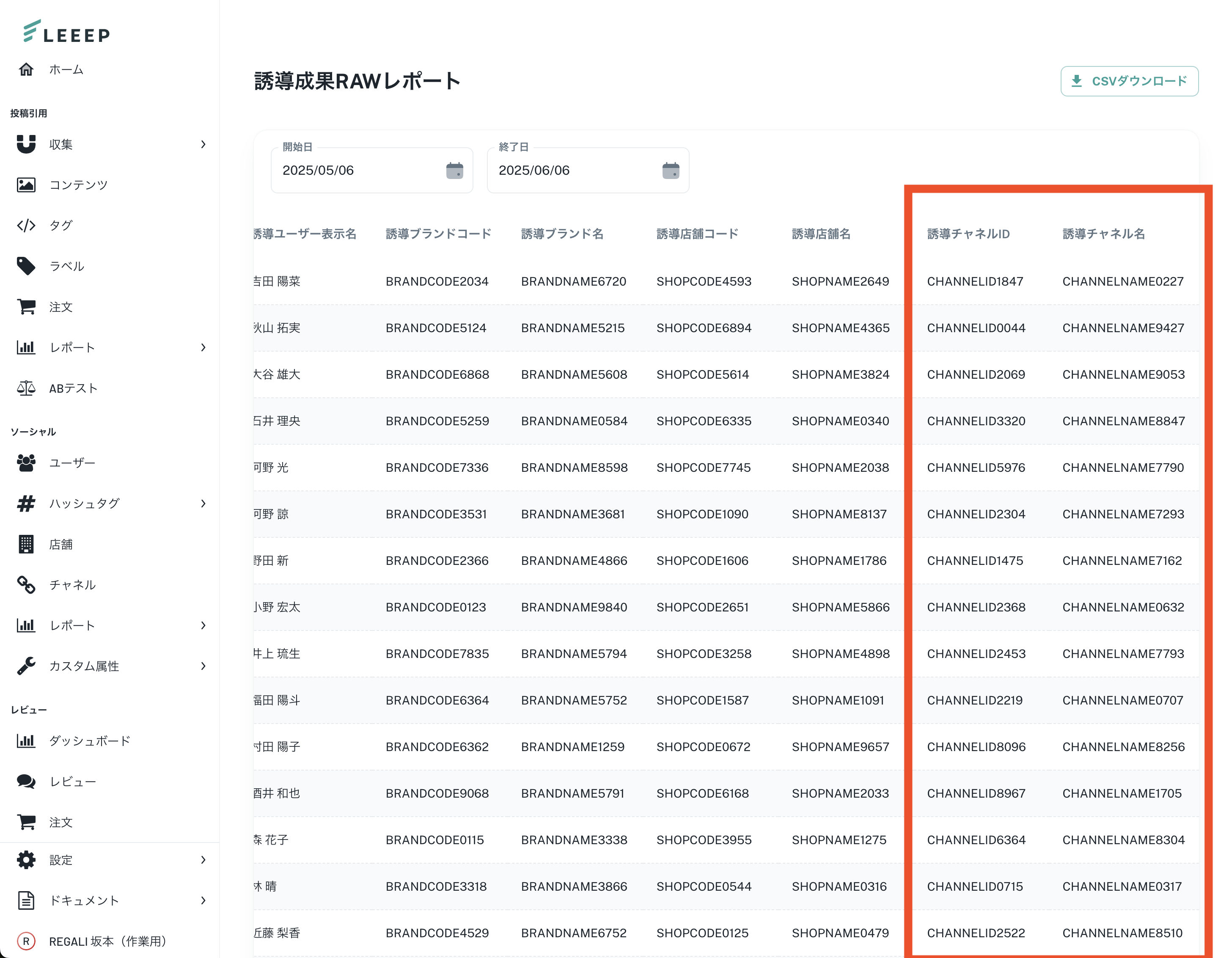 誘導成果RAWレポートに、誘導チャネルの情報が追加されました。