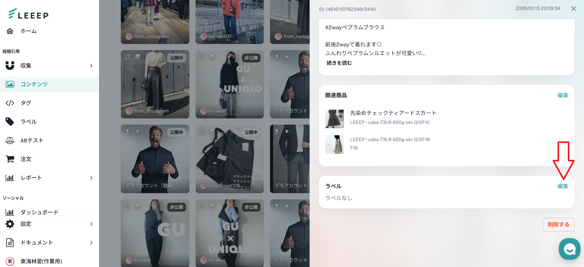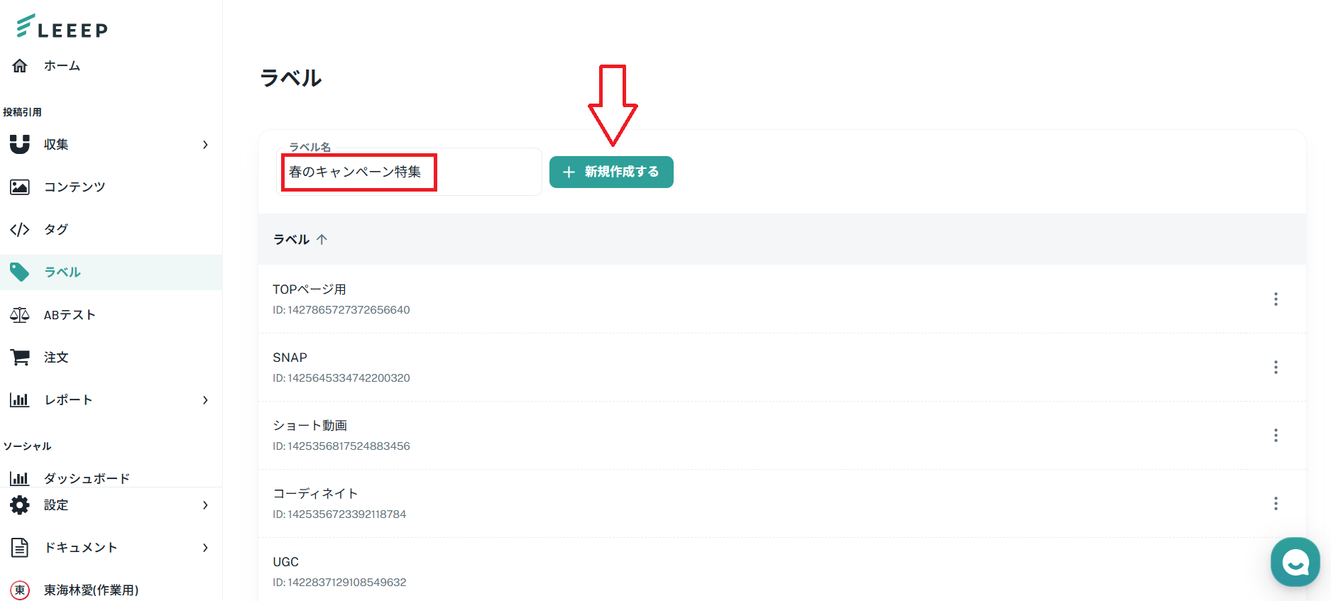 管理画面で、掲載したいコンテンツを識別するためのラベル(例:「春のキャンペーン特集」)を作成します。