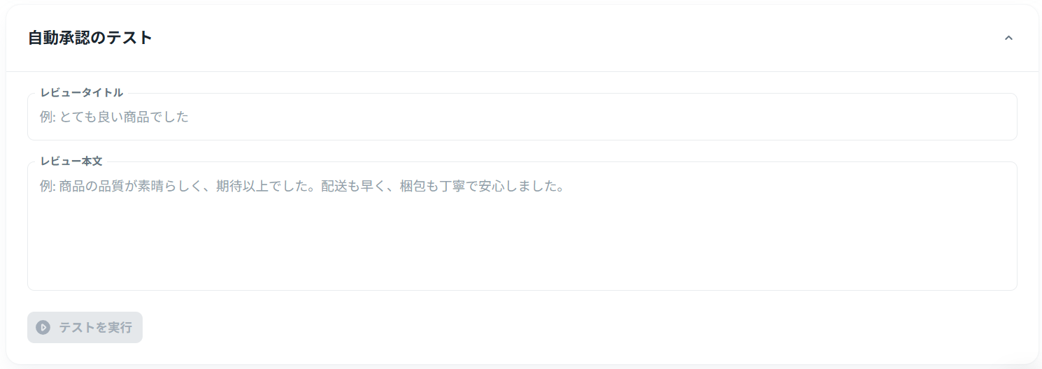 設定を保存する前に、実際のレビュー文面で「AIがどう判定するか」をテストできます。