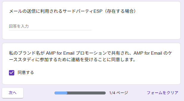 AMP メールの送信者としての私の参加は...遵守することを条件とします。 | 「同意する」にチェック |