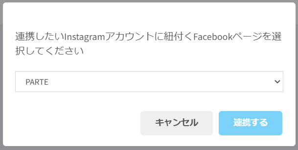 選択肢のなかからFacebookページを選択し、「連携する」ボタンをクリックしてください。