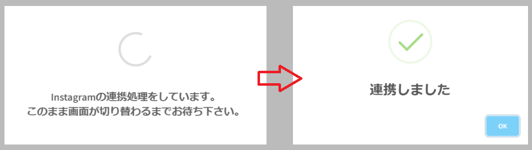 「連携する」ボタンをクリック後は、「Instagramの連携処理をしています。」というメッセージが表示されますが、このまま画面が切り替わるまでお待ちください。