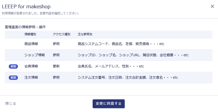 makeshopアプリの仕様上、権限設定を個別に行うことができないため、全体で一括の許可をお願いしております。ご理解とご協力のほど、何卒よろしくお願い申し上げます。