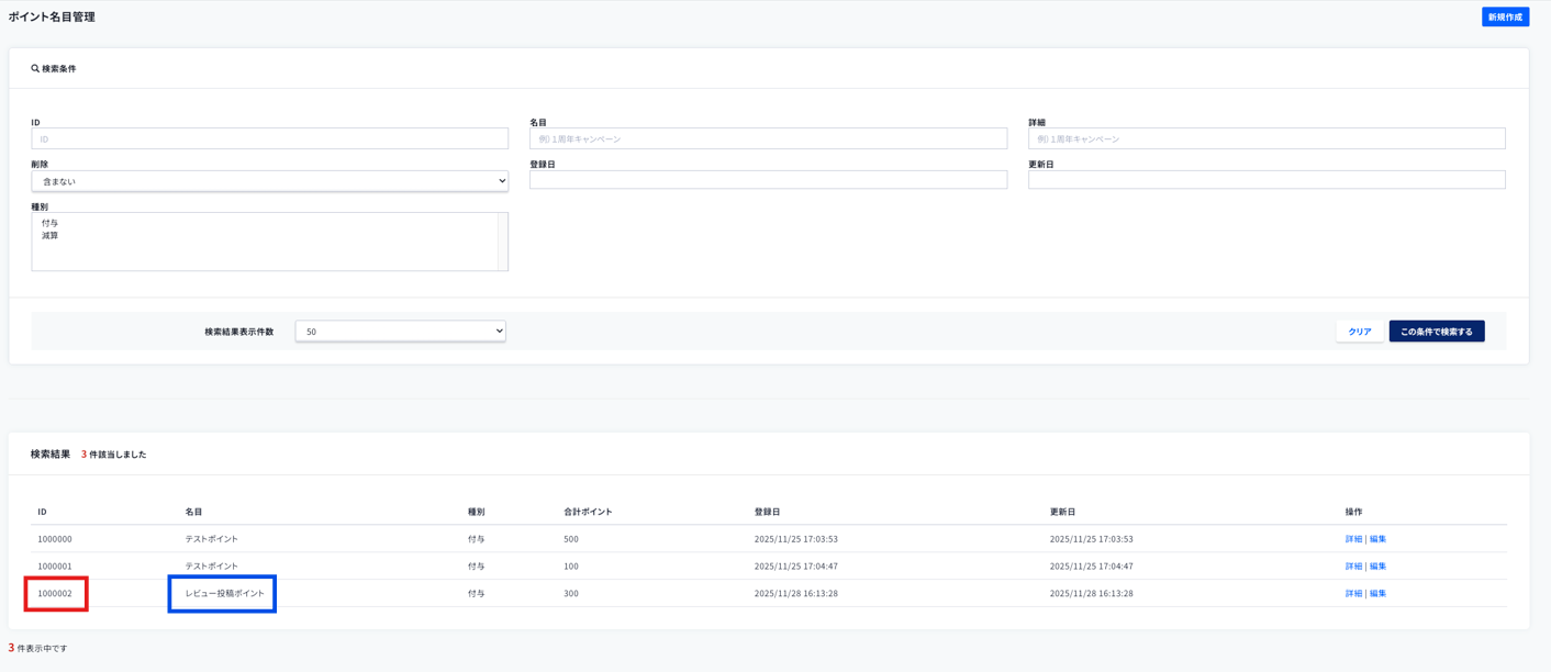 ecforce管理画面で「ポイント名目ID」を作成